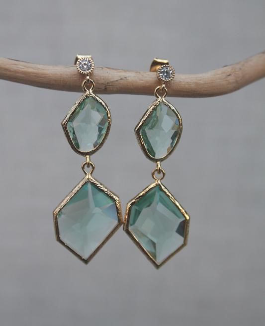 una bellissima tonalità acquamarina ed un taglio di goccia insolito danno a questi orecchini una allure incredibile. Leggeri e luminosi gli orecchini mod. "Ava" non passeranno inosservati.