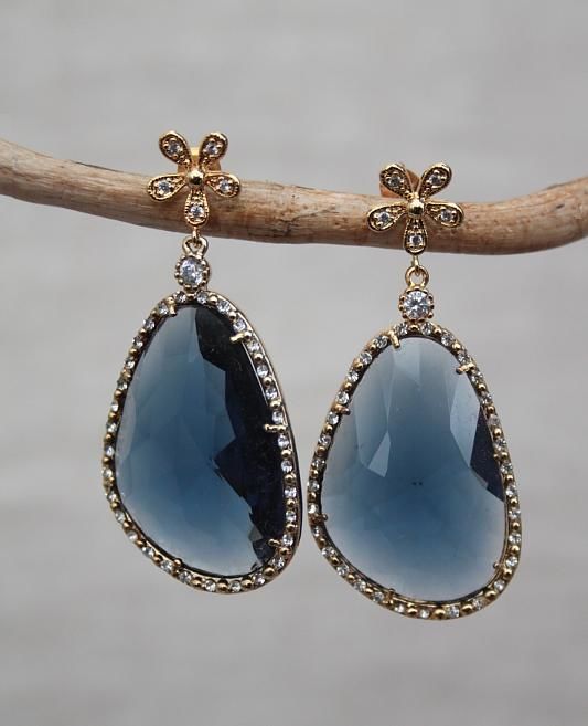Un colore classico ed intramontabile, sinonimo di eleganza, il blu zaffiro. E' proprio di questa tonalità la bellissima goccia sfaccettata pendente degli orecchini mod. Chloè con perno a fiore. Sia la goccia che il perno sono arricchiti da piccoli zirconcini per dare più luce.