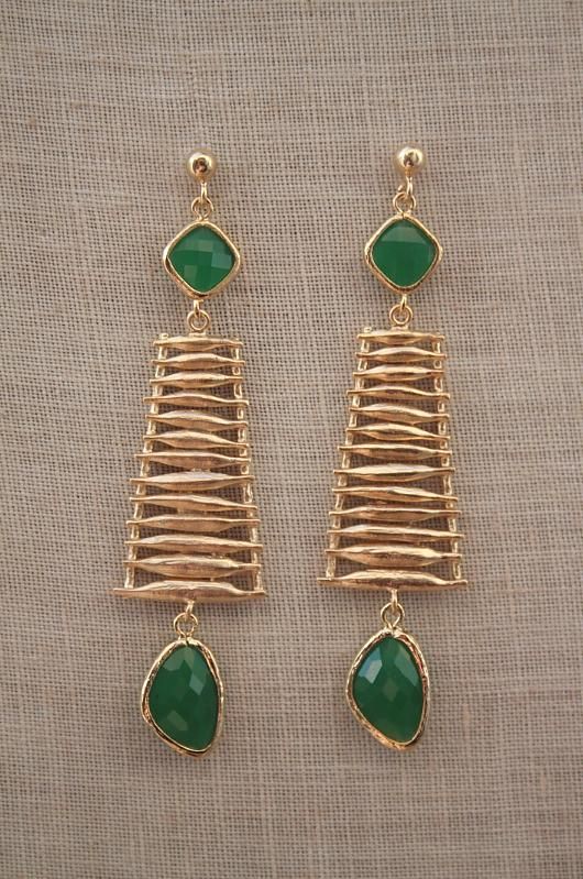 Un paio di orecchini dal design molto interessante, col fattore "whow". Una volta indossati diventeranno i vostri preferiti. Questa è la variante con pendenti a goccia di colore verde India.