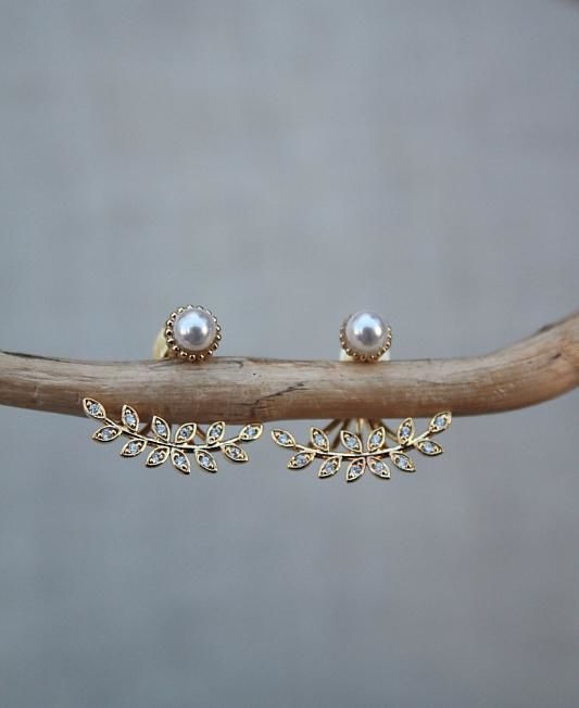 Il modello di orecchini "Foglioline" ha il perno con una perla con castone a corona ed un bellissimo archetto di delicate foglioline di zirconi. La particolarità di questi orecchini è che la ghirlanda di piccole foglie appare da sotto il lobo creando così un effetto di perfetta armonia con l'orecchio.