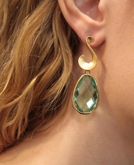 L' armonioso perno a forma di "S" dona un aspetto sofisticato agli orecchini "Spirale" che terminano con una goccia pendente sfaccettata di colore acquamarina.