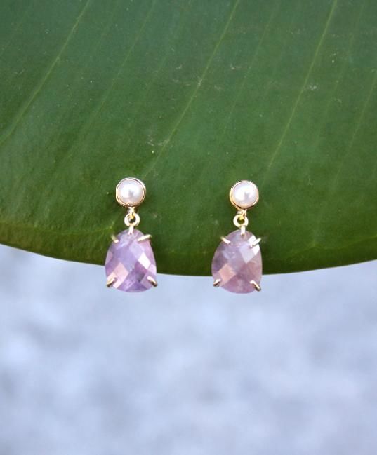 Eleganti e di meravigliosa fattura, gli orecchini modello "Stones", hanno il perno in perla e una goccia pendente di ametista.