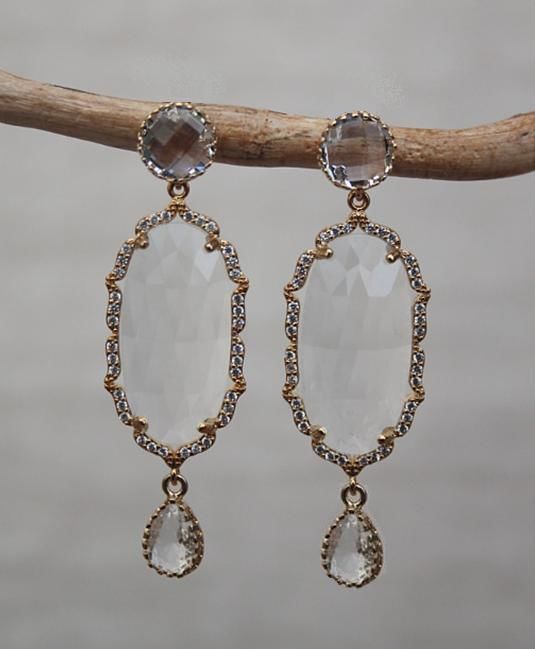 Elegantissimi e dal gusto sofisticato e retrò, gli orecchini modello "Vittoriani" sono caratterizzati da un perno tondo da cui pende una grande parte centrale chiara sfaccettata con un castone smerlato arricchito da piccoli zirconi per dare più luce e una piccola goccia finale.